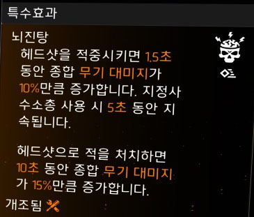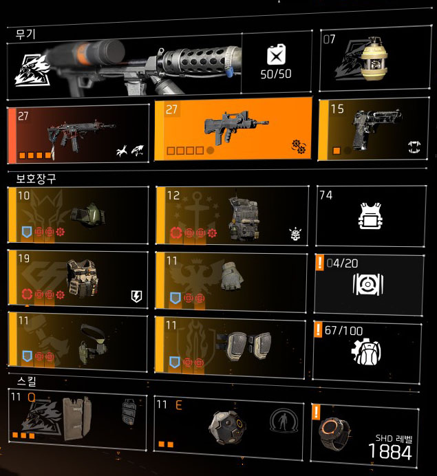 돌격소총 파밍과 비슷하지만 치명타 대미지보단 헤드샷에 좀 더 투자를 합니다.