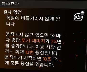 결사항전의 특수효과는 무기 대미지가 30%나 올라가지만