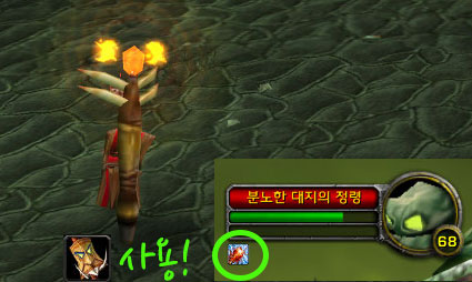 아이템 "정기의 토템"을 사용하고 분노한 정령을 가까이 몰고 와서