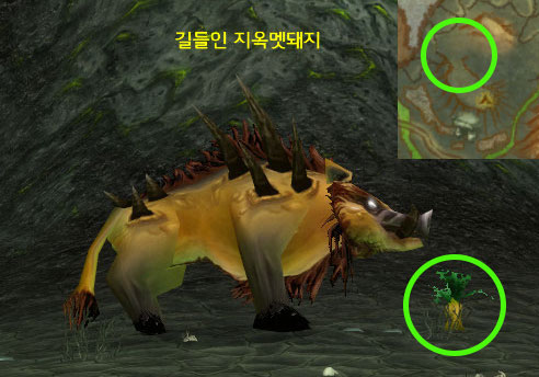 북쪽 평야에서 어둠달 덩이줄기 흙더미 주변 길들인 지옥멧돼지